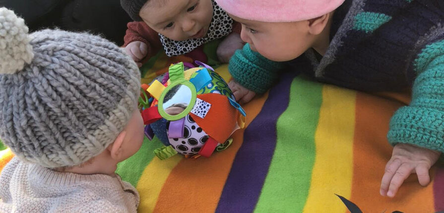 Babies love looking at your face (or that of a sibling!) or try a mirror or a high contrast toy
